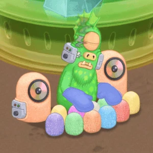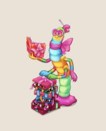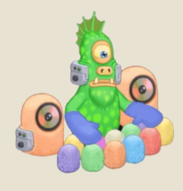 Epic Digi was born in the clouds, but skull implants help them reach a new level of intelligence! This computer tornado is a convenient assistant for any monster who wants to decorate a big piece of trash. Epic Digi’s true passion is to modernize sweet audio equipment with the most advanced Sugar crystal technology collected by Sugar City Island Tree Juices. Gritty Shuga Crystals reinforced the bonding of Barbloo teeth at the expense of a few worn claws.
