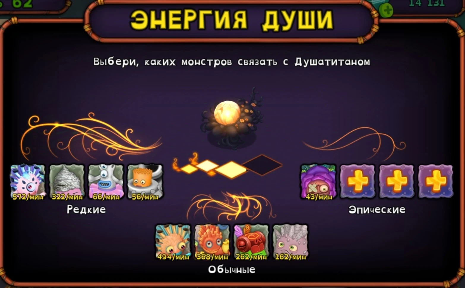 Монет. После завершения инкубации закрытый цветок с Душой становится доступен для размещения на Острове. При нажатии на него появится возможность зайти в меню Связки, через которое можно выбрать любого Монстра, имеющегося на Острове, кроме
