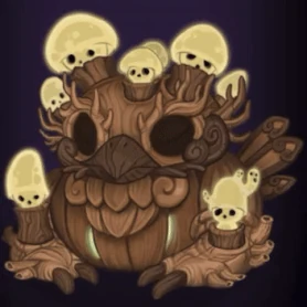 Редкий споробей приобрëл коричневый цвет. Сквозь щели в его древесном брюхе светит ядовито-зелëный свет. Точно такого же цвета у него стали и глаза. Грибы на его теле побледнели, а глаза и рты их стали чëрными. Борода, хвост, веки, руки - всë это теперь резные деревянные украшения.