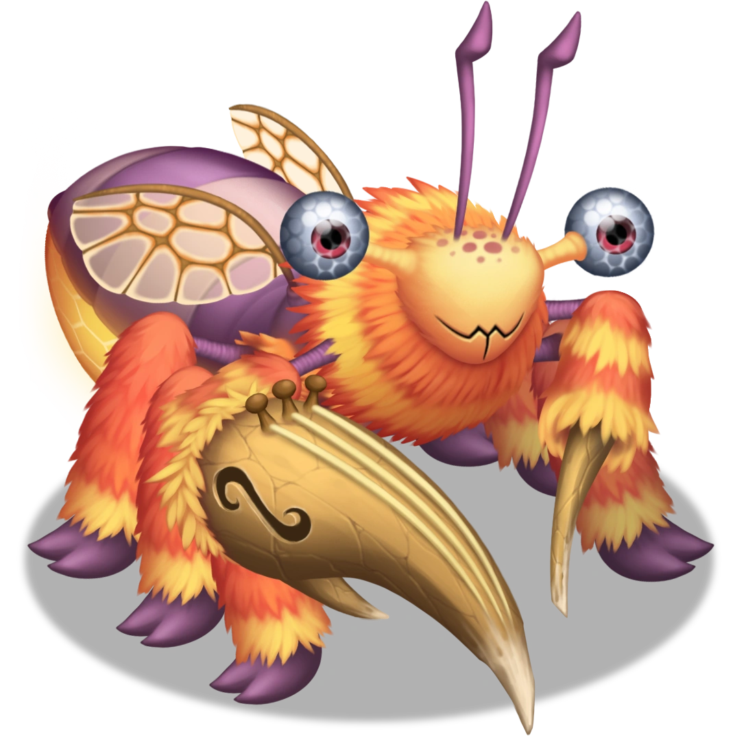 Buzzinga is a Mythical Monster in My Singing Monsters: Dawn of Fire. It was added in version 3.2.1 on the Continent. It is best obtained by breeding Barrb and Woolabee. Its breeding and incubation time is 23 hours long. Like other Mythical Monsters, It can be teleported to Wanderer Island once it reaches Level 20, using Essences.