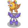 Dragong is a Double-Element Ethereal Monster on Ethereal Island and Mech Islet. It was added on May 22nd, 2014, during version 1.2.6. It is best obtained by breeding Reebro and Humbug. By default, its breeding time is 1 day and 18 hours long. As a Double-Element Ethereal, Dragong does not have a high Shard production. The Goal for placing your first Dragong rewards the player with 100,000 Coins (