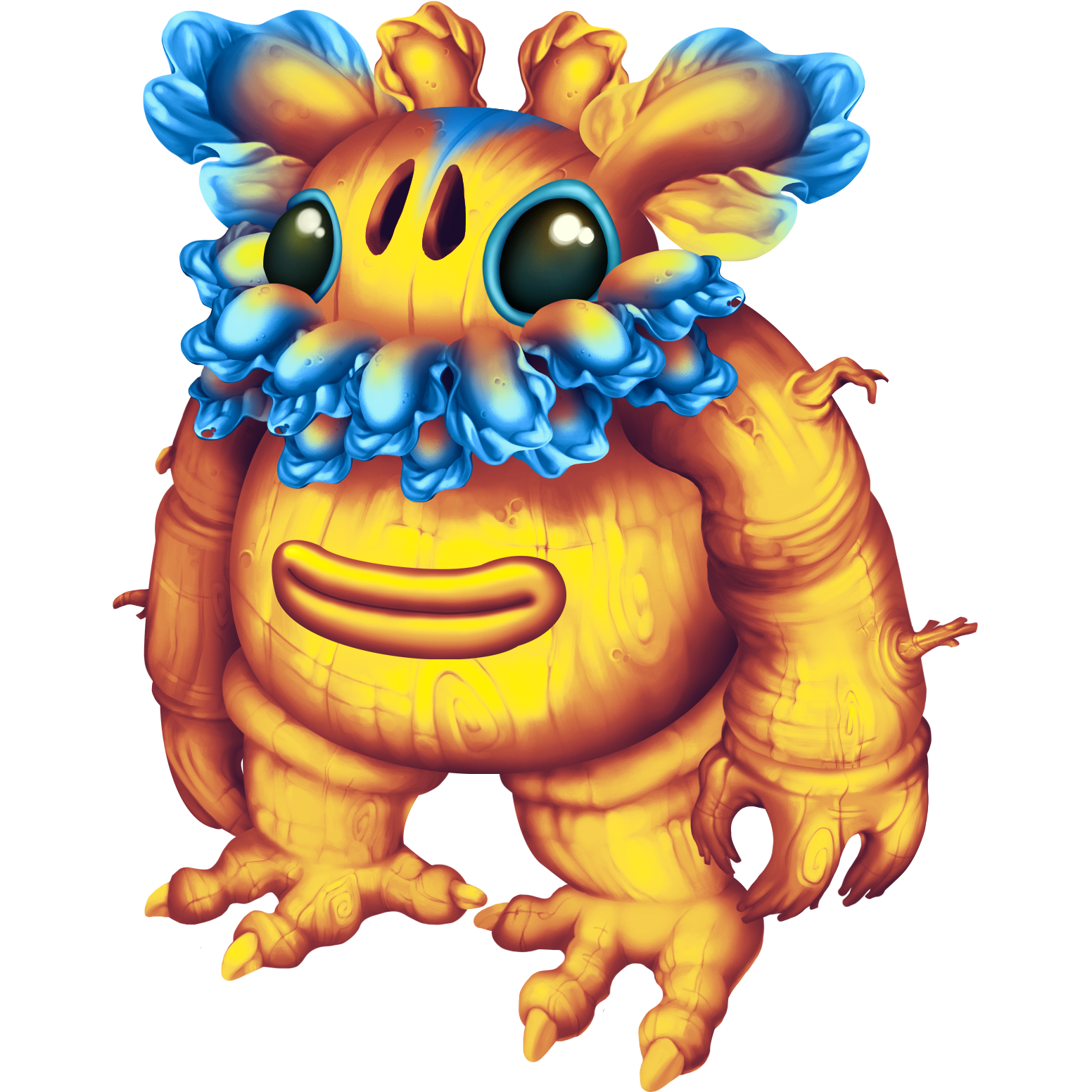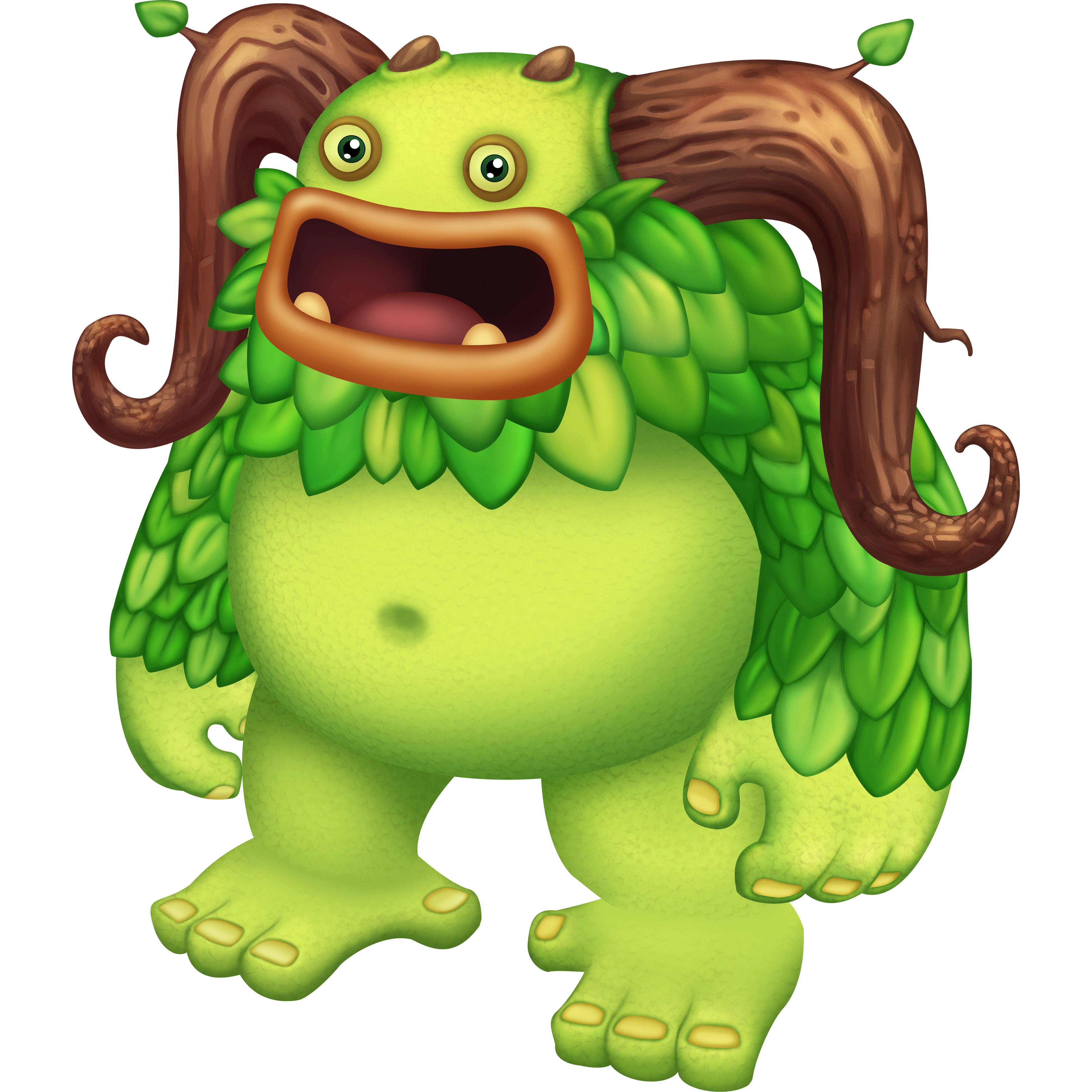 Entbrat is a Quad-Elemental Monster that is first available at Level 7. It is best obtained by breeding Bowgart and Noggin or Oaktopus and Drumpler. Its breeding and incubation time is 1 day long. It can be teleported to Cloud Island once fed to level 15.