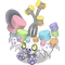 - The "gifts" inside the presents include an eyeball in the top present, a puddle of acid in the middle left present, and what appears to be either a spider's red eyes or a cranberry. It is unknown what is in the top left present, top right present, bottom right present, and the present on the ground.