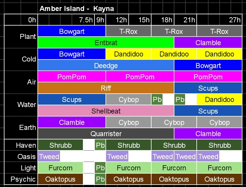 Below is an image of a Kayna farm layout. Inside the Hotel is Floogull, Woolabee, Flum Ox, Edamimi, Yelmut, PongPing, and Candelavra, the likes of Kayna and Rare Kayna, making them both 100% happy. If the Island is filled with Rare Kaynas with no Common Kaynas, a Kayna should also be in the hotel. This allows for 166 Kaynas/Rare Kaynas.