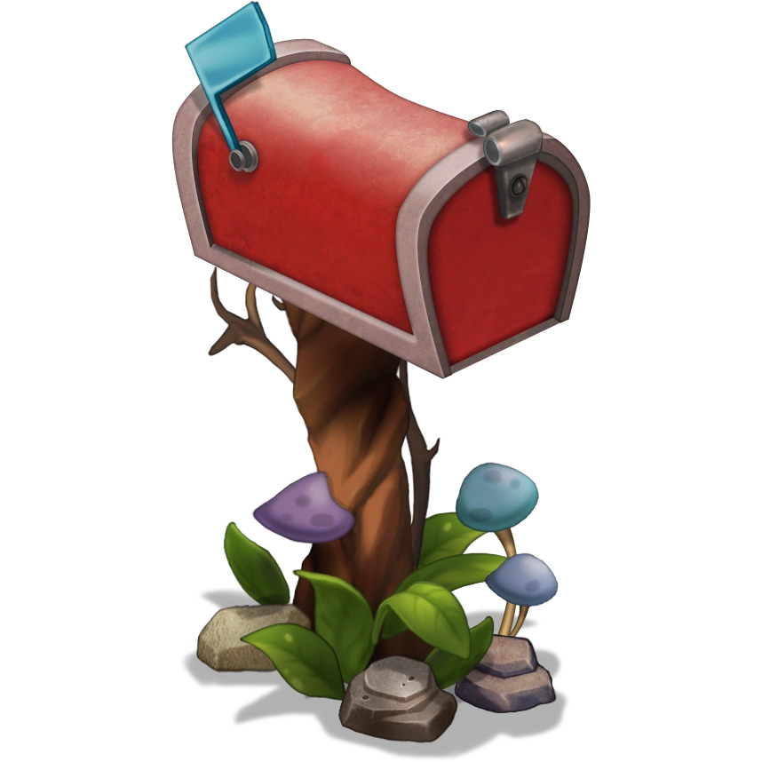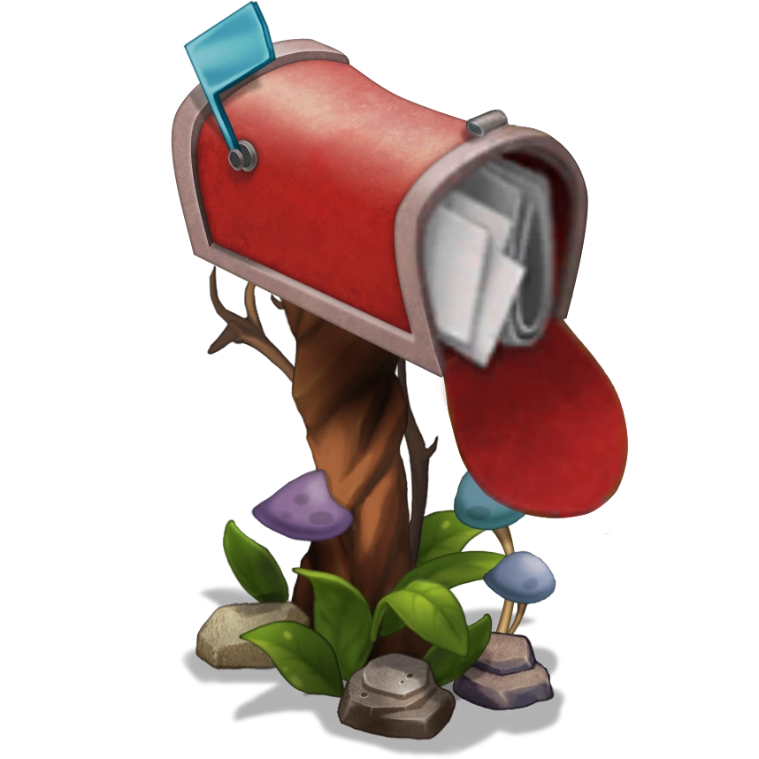The Mailbox is an immovable Structure found in the Plant Lands on the Continent. The Structure holds all your purchase receipts, Reward Offer Wall rewards, and sometimes messages from BBB Support (randomly or a response to a support ticket the player might send). During Seasonal Events, the Monster-Handlers will usually give away Diamonds, and on rare occasions, even free Monsters. Mail remains until the player manually deletes it.