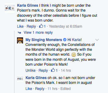 An official Facebook comment by My Singing Monsters of what constellations in the Monster World correlate to in the real world