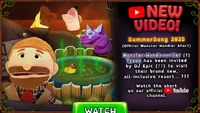 SummerSong started on Wednesday, July 9th and ended on Monday, July 28th, which marked the first time the event has ended before August. This event introduced 5 new SummerSong Series Costumes (for Mammott, PomPom, T-Rox, Fung Pray, and Rare Rooba) , 5 new limited-time Costumes available on The Colossingum after being teleported (for Thumpies, Clamble, Furcorn, Drumpler, and PomPom), 2 new Seasonal Snacks (Melon Pop and Bark Burger), Epic Incisaur, and Epic Hyehehe. On Wednesday, July 16th a special contest called Monster Summer Camp was held, in which players receive rewards when more new players start playing My Singing Monsters. One of these rewards was a new costume for Thumpies that released August 12th. In the SummerSong 2025 Monster-Handler Short, Epic Incisaur can be seen holding a poster of an event called "Newly Renovated Basement" which was held on Wednesday, July 23rd. In the trailer that premiered on that day, a new Paironormal Monster, Arcorina, was revealed, with Rare Frondley and Rare Wheezel also being released alongside it. Rare Peckidna was also added on July 23rd - although not made available until July 30th.