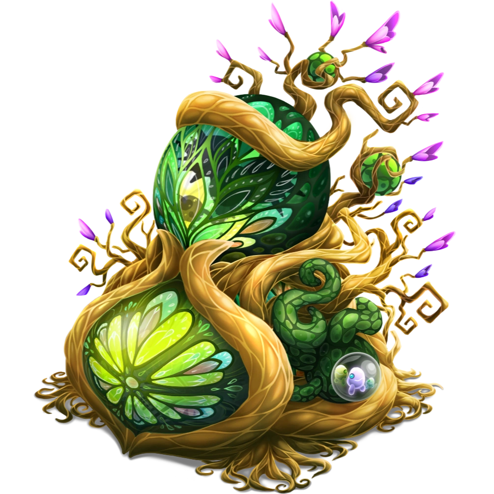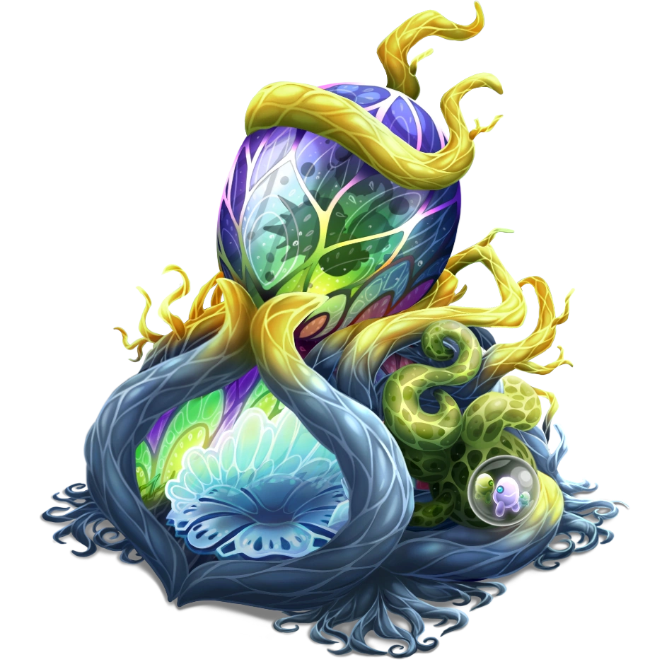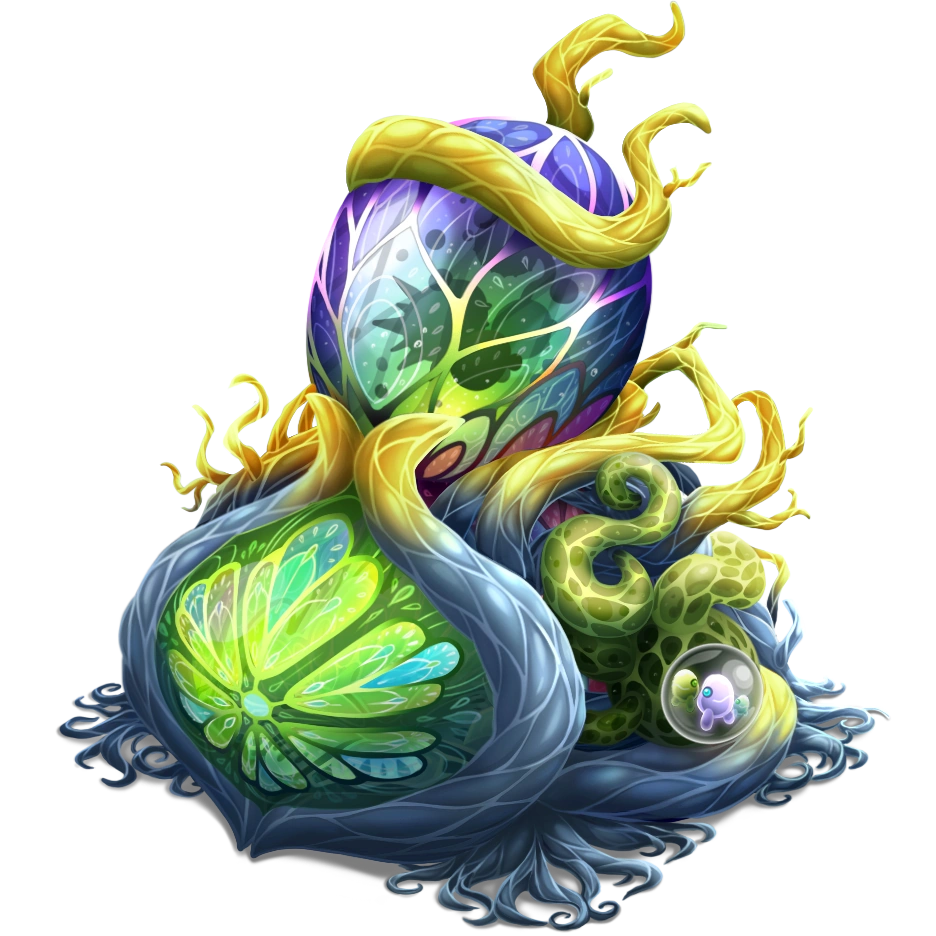 | “ | Nearing its final stage of refinement, the Mega-Super-Hyper-Refined Synthesizer is positively bursting with vitality! The verdant hues emanating from the upper bulb have spread throughout the Structure, and the organism lurking within can barely contain itself. The woody stems encircling the central chamber now offer a more solid frame, perfect for synthesizing among the most unstable Elemental combinations known to Monsterkind! | ” |