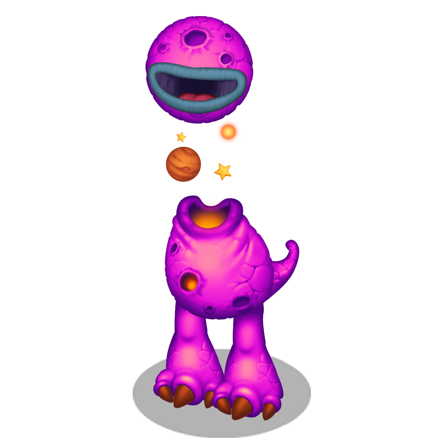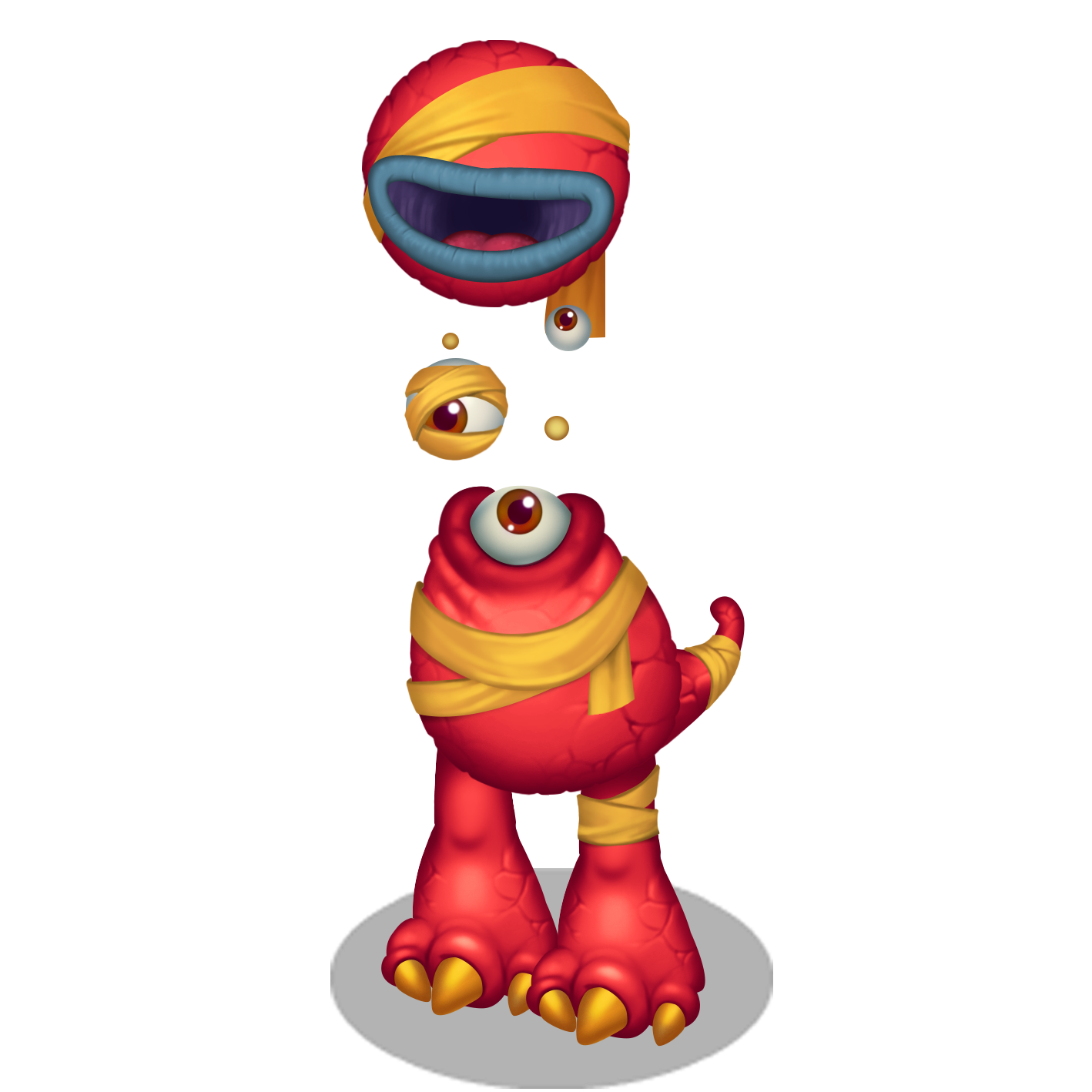 Thrumble is a Triple-Elemental Monster that is first available at level 5. It is best obtained by breeding Stogg and Toe Jammer or Phangler and Noggin. Its breeding and incubation time is 12 hours long. It can be teleported to Cloud Island once fed to level 15.
