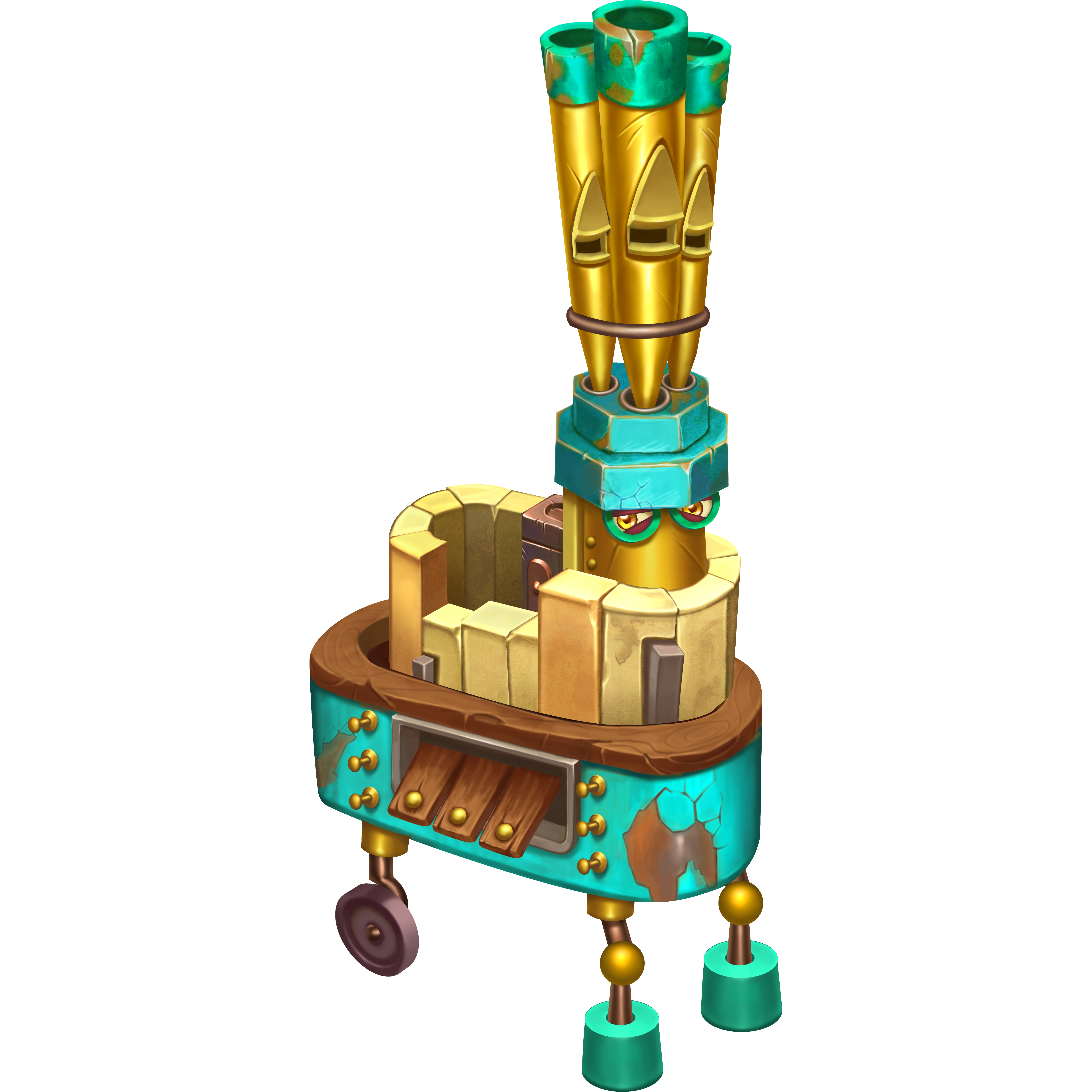 | “ | After eons spent as a sentient, though incorporeal, mass of energy, the Vhamp finally got itself together – quite literally – and constructed its own physical form from random detritus scattered about the universe. More self-assembled than self-actualized, the Vhamp nonetheless seeks to discover its true self through musical experimentation and purposeful self-reflection. With its pipes, gears, bellows, and levers, the Vhamp is an extraordinary aggregate of basic parts working in complex harmony. It exhibits a steady tempo, smooth airflow dynamics, and wobbly suspension. | ” |