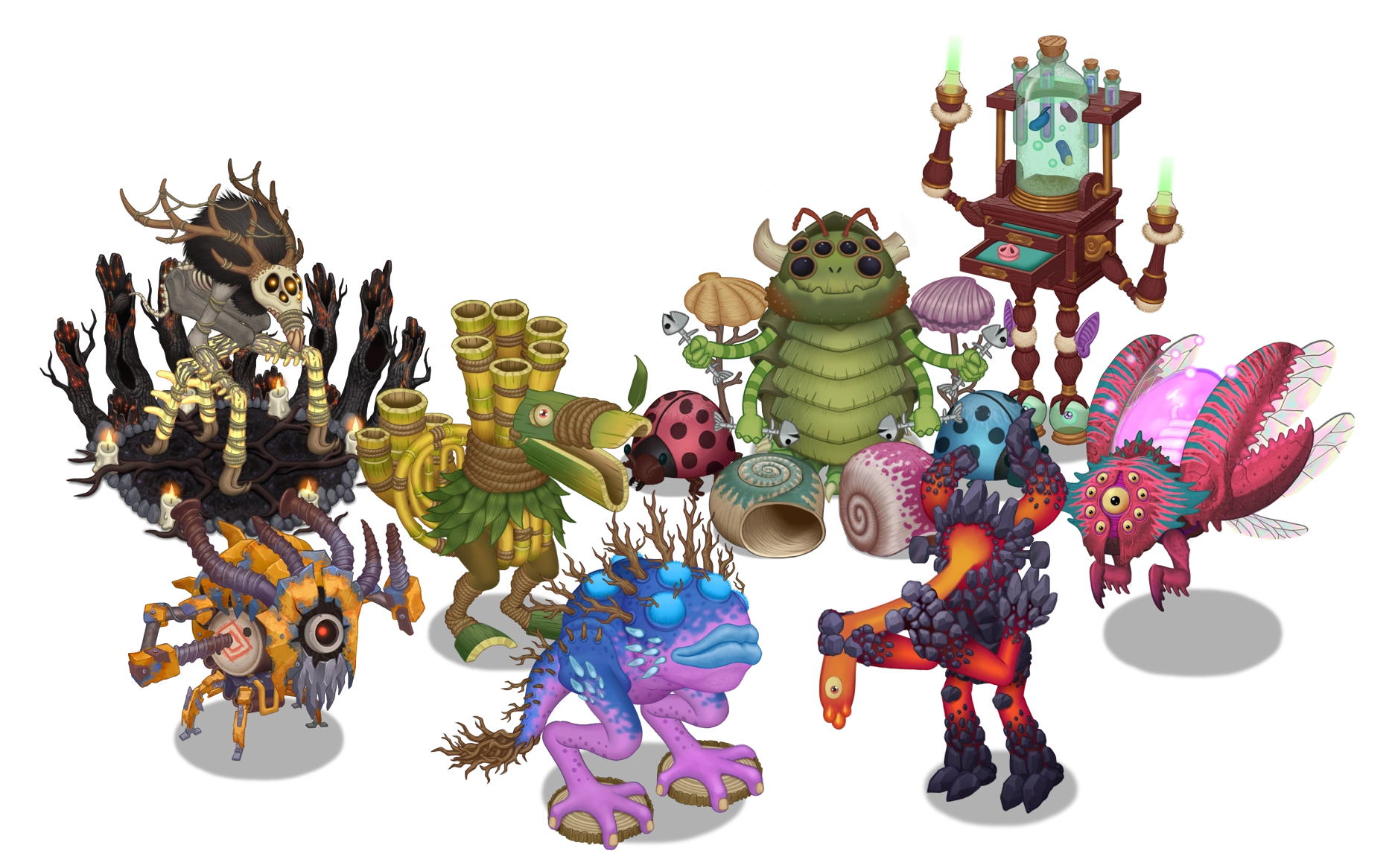 Wublins are a sub-class of Supernatural Monsters that are exclusive to Wublin Island. There are a total of 45 Wublins, with 19 Common Wublins, 19 Rare Wublins, and 7 Epic Wublins. Like the Supernatural Wubbox, the Wublins are purchased from the Market and start in an inactive form. To start contributing to Wublin Island's song and generating currency, they must be woken up by zapping Eggs from Breeding Structures on other islands. Each Common Wublin has a time limit, so you need to zap the required Eggs before they 'expire'. Once they are awakened, they will generate Coins, Food, Shards, or rarely Diamonds at random.